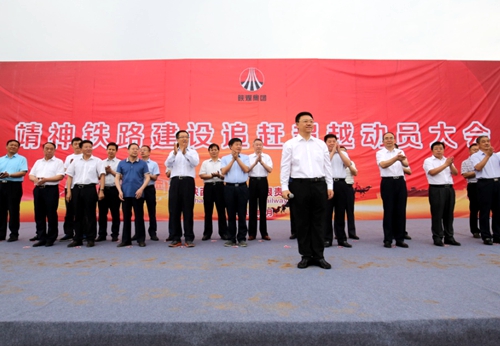 榆林市相關(guān)部門區(qū)縣;陜煤集團(tuán)相關(guān)部門及在榆企業(yè);陜鐵流集團(tuán)及所屬單位;靖神鐵路各股東單位及沿線相關(guān)企業(yè)的領(lǐng)導(dǎo)和負(fù)責(zé)人;靖神鐵路全體員工和參建單位領(lǐng)導(dǎo)、項(xiàng)目部管理及施工人員等500余人參加了動(dòng)員會(huì)。