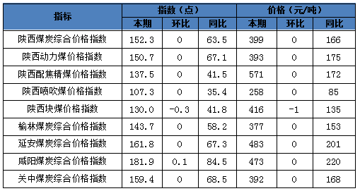 一、本期陜西煤炭價格指數(shù)及代表規(guī)格品價格情況
