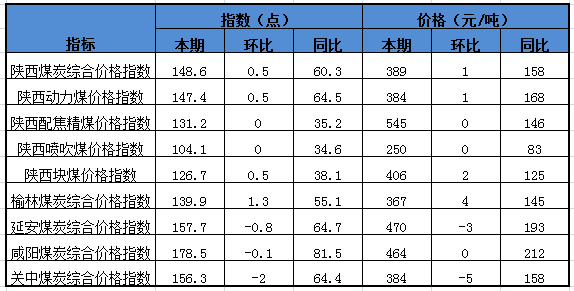 一、本期陜西煤炭價格指數(shù)及代表規(guī)格品價格情況