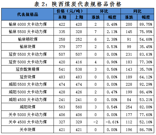 一、本期陜西煤炭價格指數(shù)及代表規(guī)格品價格情況