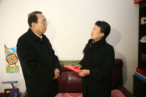 隨后,郭永平一行深入銅川礦業(yè)公司困難職工家庭,看望慰問(wèn)了工亡遺屬賀綏青和困難黨員張福寶,并向他們送上了慰問(wèn)品和慰問(wèn)金。在賀綏青家,郭永平詳細(xì)詢(xún)問(wèn)了她的家庭收入、日常生活、兩個(gè)孩子上學(xué)和就業(yè)等情況后,叮囑她有困難要及時(shí)反映,政府和企業(yè)會(huì)盡力為每一位困難群眾排憂(yōu)解難。在張福寶家,郭永平詢(xún)問(wèn)了老人和老伴的身體狀況,并對(duì)老人說(shuō),春節(jié)就就要到了,我代表省委省政府來(lái)看看你們,希望老人家保重身體,心情愉悅,度過(guò)一個(gè)歡樂(lè)祥和的春節(jié)。