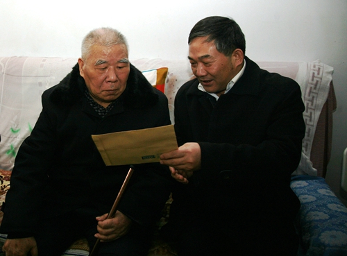 銅川分公司職工郇同州已經(jīng)因病去世3年有余,家里父母年過(guò)古稀,體弱多病,銅川分公司了解到這一情況后每年春節(jié)前都會(huì)安排專(zhuān)人登門(mén)慰問(wèn),今年,王增強(qiáng)一行也來(lái)到了家里。“感謝領(lǐng)導(dǎo)對(duì)我們的關(guān)心!”郇同州年邁的母親接過(guò)慰問(wèn)金后,連聲道謝,對(duì)組織的關(guān)懷感動(dòng)不已。