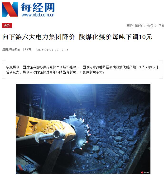具體為,陜煤化集團(tuán)決定從2016年11月5日零時(shí)起,以目前陜煤化旗下各礦區(qū)的煤炭價(jià)格為基準(zhǔn),對華能、華潤、華電、國電、大唐、國電投這六大電力集團(tuán)的鐵路動(dòng)力煤價(jià)格一律下調(diào)10元/噸。而地銷及其他客戶并不在此次降價(jià)范圍之內(nèi)。
