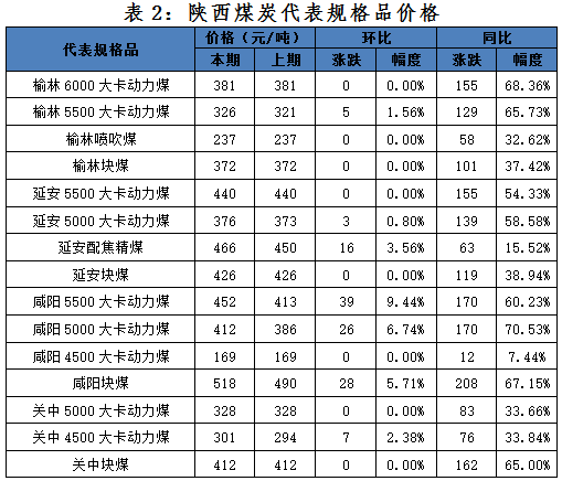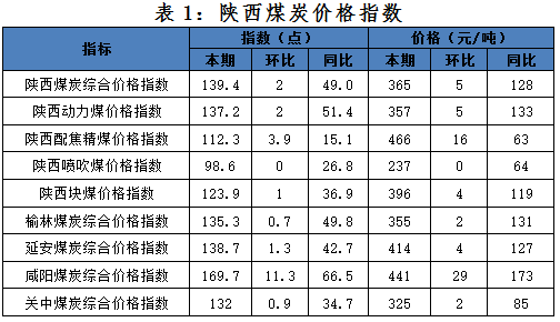 一、本期陜西煤炭?jī)r(jià)格指數(shù)及代表規(guī)格品價(jià)格情況