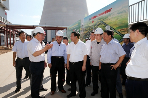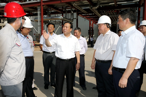 調(diào)研中,姜鋒來到美鑫公司年產(chǎn)30萬噸鋁鎂合金生產(chǎn)線項(xiàng)目,現(xiàn)場(chǎng)察看工程建設(shè)進(jìn)度,了解鋁鎂合金產(chǎn)業(yè)發(fā)展趨勢(shì)。姜峰走進(jìn)美鑫錦陽(yáng)電廠,聽取了公司董事長(zhǎng)拓劉毅對(duì)企業(yè)概況、項(xiàng)目進(jìn)展情況的匯報(bào)。他仔細(xì)詢問了目前電廠建設(shè)情況,與陜煤化、陜西有色集團(tuán)領(lǐng)導(dǎo)進(jìn)行親切交談。當(dāng)聽到美鑫錦陽(yáng)電廠的建設(shè),采用的是電除塵加濕法脫硫加濕式除塵一體化方案,煙囪高度240米,間接空冷冷卻塔高度179.5米,屬于中國(guó)最高,完全達(dá)到環(huán)保要求,是目前國(guó)家火電廠環(huán)保指標(biāo)排放最先進(jìn)的,他表示贊賞。他還向嚴(yán)廣勞詢問了煤炭行業(yè)近期狀況,并強(qiáng)調(diào)火力發(fā)電的益處與缺點(diǎn)。