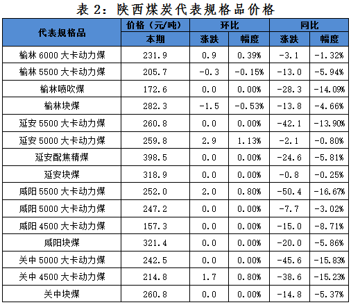 榆林地區(qū),本期交易量略有上升,動(dòng)力煤價(jià)格,尤其是塊煤價(jià)格,出現(xiàn)波動(dòng)回落。從監(jiān)測(cè)價(jià)格情況看:Q6000動(dòng)力煤均價(jià)231.9元/噸,較上期上漲0.9元/噸;Q5500動(dòng)力煤均價(jià)205.7元/噸,較上期下跌0.3元/噸;塊煤均價(jià)282.3元/噸,較上期下降1.5元/噸。