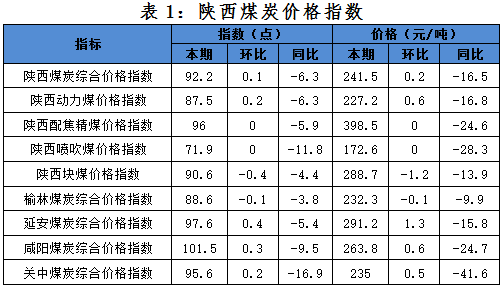 二、本期市場(chǎng)分析2016年6月24日陜西煤炭綜合價(jià)格指數(shù)為92.2點(diǎn),環(huán)比上期上漲0.1點(diǎn),同比下跌6.3點(diǎn),對(duì)應(yīng)陜西煤炭綜合價(jià)格241.5元/噸,環(huán)比上期上漲0.2元/噸,同比下跌16.5元/噸。其中分品種:動(dòng)力煤指數(shù)87.5點(diǎn),較上期上漲0.2點(diǎn);配焦精煤指數(shù)96點(diǎn),較上期持平;噴吹煤指數(shù)71.9點(diǎn),較上期持平;塊煤指數(shù)90.6點(diǎn),較上期下跌0.4點(diǎn);分區(qū)域:榆林指數(shù)88.6點(diǎn),較上期下跌0.1點(diǎn);延安指數(shù)97.6,較上期上漲0.4點(diǎn);咸陽指數(shù)101.5點(diǎn),較上期上漲0.3點(diǎn);關(guān)中指數(shù)95.6點(diǎn),較上期上漲0.2點(diǎn)。