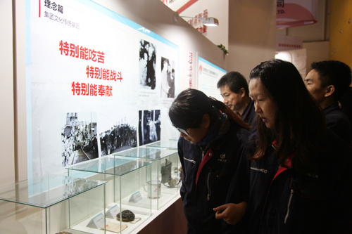 在本次成果展中,集團(tuán)公司以理念篇、視覺(jué)篇、載體篇、成果片、展望篇為綱,用視頻、實(shí)物、圖片并輔以文字的方式,全方位地展示了企業(yè)在近年來(lái)文化建設(shè)方面的成果和心得。尤其對(duì)于“特別能吃苦特別能戰(zhàn)斗 特別能奉獻(xiàn)”這一傳統(tǒng)文化基因的回顧,再現(xiàn)了崢嶸歲月中的陜煤人篳路藍(lán)縷、手足胼胝的創(chuàng)業(yè)艱辛。對(duì)于文化建設(shè)八大工程的一一呈現(xiàn),更具象地體現(xiàn)了文化之于現(xiàn)代企業(yè)建設(shè)更加潛移默化而不可或缺地作用,吸引了大量參觀者的駐足關(guān)注。