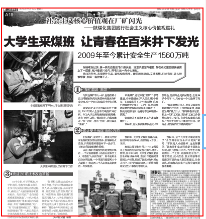 “知識(shí)和實(shí)踐結(jié)合起來(lái)才更有力量,大學(xué)生采煤班是高素質(zhì)人才、高科技裝備、高標(biāo)準(zhǔn)管理、高效率團(tuán)隊(duì)的現(xiàn)代煤礦班組。”韓東華說(shuō),現(xiàn)代化的煤礦需要高科技人才,大學(xué)生采煤班已經(jīng)帶來(lái)了巨大的示范效應(yīng),他們的快速成長(zhǎng)成了很多年輕人的榜樣,“越是條件艱苦的地方,越需要改革與創(chuàng)新,越需要有知識(shí)有志氣的青年?!睆埲鸱逭f(shuō)。