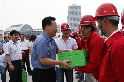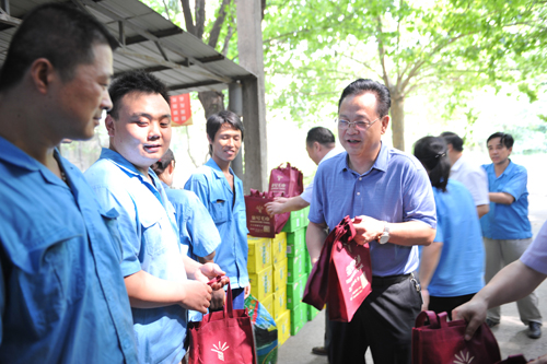 在西安煤機(jī)公司,馬富元一行先后來(lái)到該公司生產(chǎn)環(huán)境最為艱苦的金屬結(jié)構(gòu)車間和熱處理車間,每到一處,他與工人們親切握手交談,并一一送上毛巾、涼茶等物品,對(duì)大家在高溫天仍堅(jiān)守在生產(chǎn)一線表示慰問(wèn)和感謝。隨后馬富元分別察看了兩個(gè)車間的生產(chǎn)情況,詢問(wèn)車間的生產(chǎn)任務(wù),了解職工各項(xiàng)權(quán)益保障情況。
