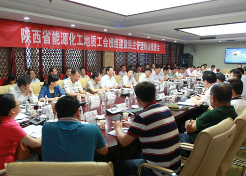 為推廣優(yōu)秀企業(yè)班組建設(shè)的經(jīng)驗(yàn)和做法,促進(jìn)全系統(tǒng)班組建設(shè)水平整體提高,7月16日,陜西省能源化工地質(zhì)工會(huì)班組建設(shè)民主管理現(xiàn)場(chǎng)推進(jìn)會(huì)在陜煤化集團(tuán)神南檸條塔礦業(yè)公司召開。陜西省總工會(huì)黨組成員、副主席丁立虎、市總工會(huì)常務(wù)副主席李孝南、省能源化工地質(zhì)工會(huì)主席薛躍,集團(tuán)公司黨委副書記、工會(huì)主席馬富元、工會(huì)負(fù)責(zé)人李向東,省能源化工地質(zhì)工會(huì)相關(guān)人員,陜煤化集團(tuán)公司、延長(zhǎng)石油集團(tuán)等陜西能源地質(zhì)化工系統(tǒng)各企業(yè)工會(huì)及所屬各單位工會(huì)負(fù)責(zé)人,《工人日?qǐng)?bào)》、《中國(guó)化工報(bào)》等媒體記者共92人參加了會(huì)議。