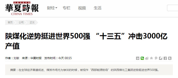 在全球經(jīng)濟普遍低迷、煤炭市場尤為慘淡的時候,被視作“西部能源航母”的陜西煤化工集團逆勢挺進世界500強。