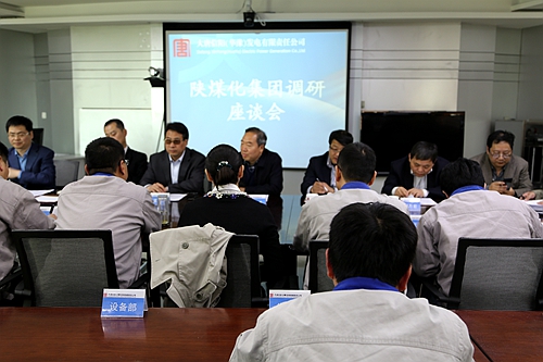 4月14日,陜煤化集團(tuán)公司副總經(jīng)理王增強(qiáng)一行到信陽發(fā)電公司就煤炭供應(yīng)工作展開調(diào)研座談。大唐河南公司燃料管理中心主任趙陽、信陽發(fā)電公司領(lǐng)導(dǎo)班子成員陪同調(diào)研。