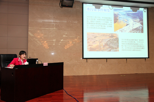 上午,來自省環(huán)保廳法規(guī)處的呂秀蕓老師從環(huán)保法體系框架、修訂過程、新環(huán)保法總體框架及主要內(nèi)容等四個(gè)方面進(jìn)行了講解。并結(jié)合我國目前水、大氣、土地的污染現(xiàn)狀,和環(huán)境質(zhì)量惡化加劇、突發(fā)環(huán)境事件集中爆發(fā),環(huán)境群體性事件不斷發(fā)生的新趨勢,對環(huán)境保護(hù)的重要意義進(jìn)行了分析。