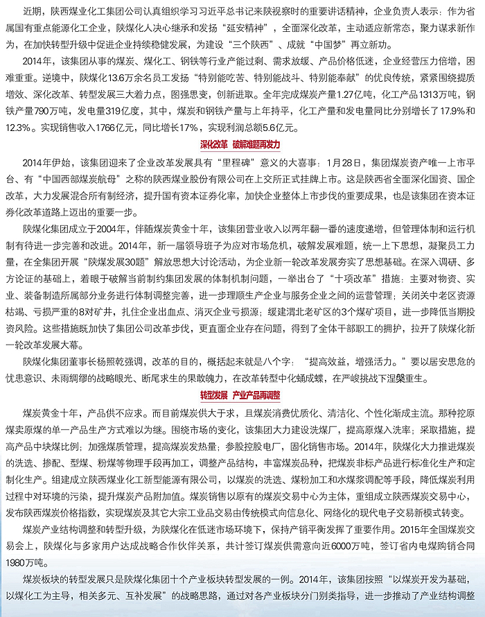 當(dāng)代陜西:陜西煤業(yè)化工集團(tuán) 主動(dòng)適應(yīng)新常態(tài) 聚力謀求新作為