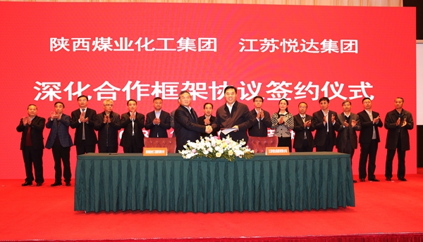 11月18日至19日,陜煤集團(tuán)黨委書(shū)記、董事長(zhǎng)楊照乾,副總經(jīng)理趙福堂、孫喜民,集團(tuán)有關(guān)部門(mén)、有關(guān)單位負(fù)責(zé)人一行赴鹽城考察,拜會(huì)鹽城市領(lǐng)導(dǎo),參觀有關(guān)企業(yè),并與悅達(dá)集團(tuán)簽訂《深化合作框架協(xié)議》。雙方企業(yè)將在煤礦、煤電一體化、煤炭物流、新材料、新能源、科技研發(fā)等方面開(kāi)展新一輪戰(zhàn)略合作。