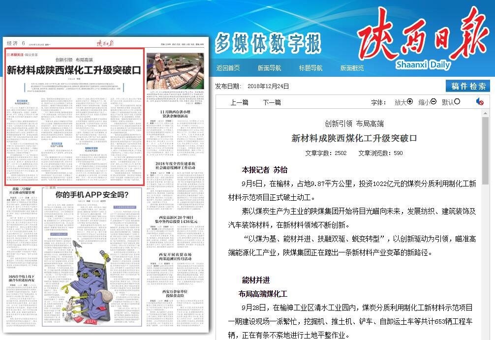 創(chuàng)新引領 布局高端 新材料成陜西煤化工升級突破口