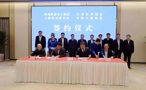 1月5日上午,陜煤集團、鎮(zhèn)江市人民政府、丹陽市人民政府、上海悅達新實業(yè)、丹陽天惠投資、江蘇恒神股份合作簽約儀式在丹陽舉行。陜煤集團黨委書記、董事長楊照乾,副總經(jīng)理尚建選,總經(jīng)理助理、化工事業(yè)部經(jīng)理梁玉昆及戰(zhàn)略規(guī)劃部、企業(yè)管理部、技術研究院和財務資產(chǎn)部等部門負責人;鎮(zhèn)江市委書記惠建林、鎮(zhèn)江市市長張葉飛及丹陽市、悅達集團、丹陽天惠投資、江蘇恒神股份等政府、企業(yè)相關領導出席簽約儀式。