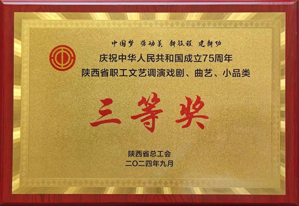 10月25日,由陜西省總工會(huì)主辦的“慶祝中華人民共和國成立75周年”陜西省職工文藝調(diào)演頒獎(jiǎng)典禮隆重舉行。公司選送的舞蹈類節(jié)目《我們的芳華》、音樂類節(jié)目《我唱山歌給黨聽》榮獲二等獎(jiǎng),選送的情景劇《唱支山歌給黨聽》獲得小品曲藝類三等獎(jiǎng)。