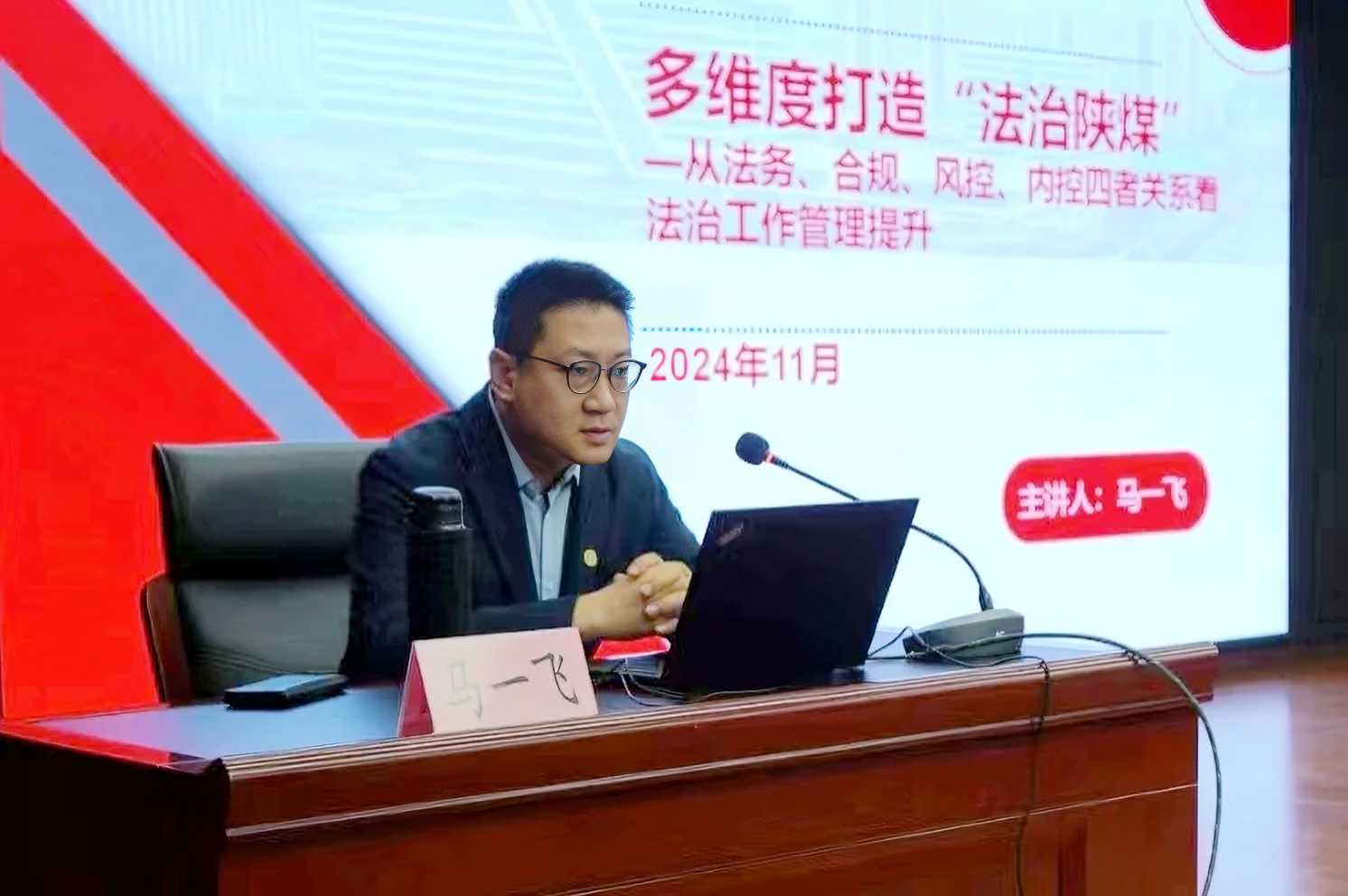 本次培訓,邀請陜煤集團法律風控部業(yè)務(wù)主管馬一飛進行現(xiàn)場授課。培訓中,馬一飛以《多維度打造“法治陜煤”——從法務(wù)、合規(guī)、風控、內(nèi)控四者的關(guān)系看法治工作管理提升》為題,從“法律、合規(guī)、風險、內(nèi)控”之間的關(guān)系、新《公司法》視角下的國企法務(wù)管理、《民法典》合同編的相關(guān)要點、推進合規(guī)管理的陜煤實踐、‘法治陜煤’建設(shè)工作展望”五個方面,對推動依法治企的重要意義、陜煤集團推進“法務(wù)、合規(guī)、風險、內(nèi)控”一體化管理的探索與實踐、新《公司法》對加強依法治企工作提出的新要求、構(gòu)建企業(yè)法律風險防控與依法合規(guī)管理體系的遵循原則、操作方法、實踐路徑、注意事項及工作要求等知識進行了細致解讀,并從“加強企業(yè)依法治理體系的頂層設(shè)計、構(gòu)建完備的企業(yè)風險防控和合規(guī)管理制度體系、科學配置各治理主體權(quán)利、義務(wù)和責任、聚焦重點領(lǐng)域關(guān)鍵環(huán)節(jié)加強風險防控與監(jiān)督管理、科學構(gòu)建依法治企風險防控工作運行機制、推進法治宣傳教育大力營造依法治企濃厚氛圍”等方面,對推進依法治企,加強風險防控,強化合規(guī)管理,提升企業(yè)治理效能的方法和路徑進行了解讀和指導。