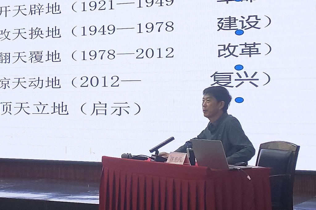授課中,賈巨川圍繞“初心典亮百年夢,使命砥礪新征程”的主題,從歷史縱深處回溯了中國共產(chǎn)黨人在不同歷史時期艱苦奮斗的革命歷程,重溫了老一輩共產(chǎn)黨人堅定理想信念,不怕犧牲、百折不撓的崢嶸歲月,闡述了中國共產(chǎn)黨人初心使命的歷史內(nèi)涵。勉勵大家繼續(xù)傳承和發(fā)揚(yáng)老一輩無產(chǎn)階級革命家堅持真理、勇往直前的精神,為實現(xiàn)中華民族偉大復(fù)興的中國夢而努力奮斗。