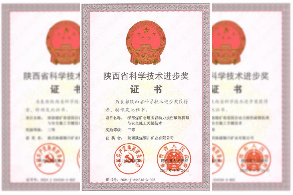 近日,中共陜西省委辦公廳公布了《中共陜西省委陜西省人民政府關(guān)于2024年度陜西省科學(xué)技術(shù)獎勵的決定》,公司《深部煤礦巷道圍巖動力損傷破裂機(jī)理與安全施工關(guān)鍵技術(shù)》科研項目獲得陜西省科學(xué)技術(shù)進(jìn)步三等獎。