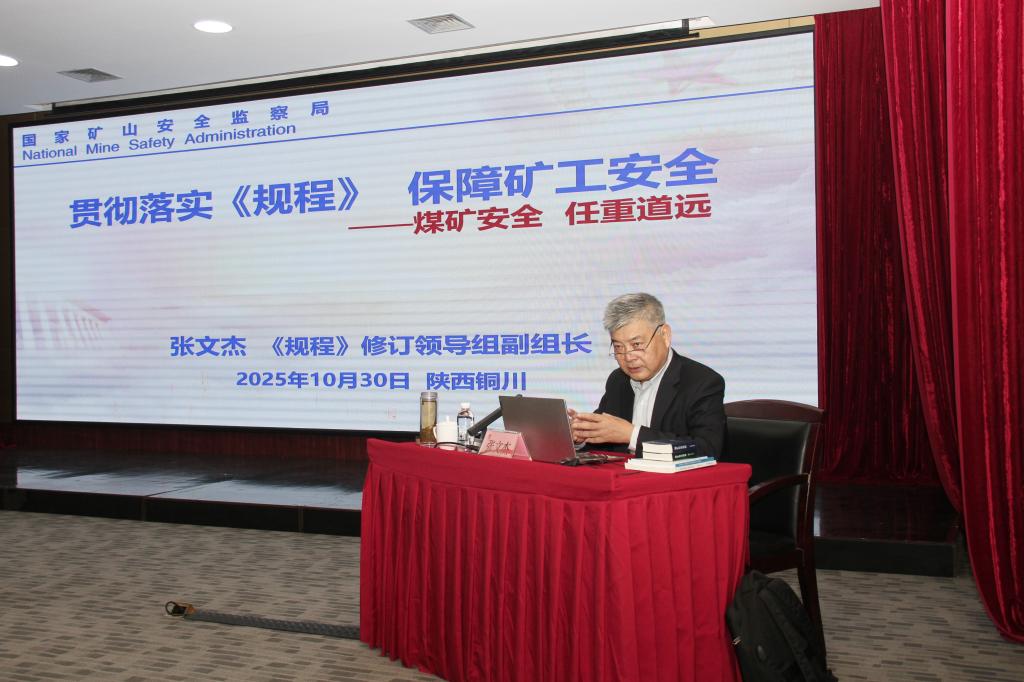 張文杰以《貫徹落實(shí)<規(guī)程>保障礦工安全》為題,對(duì)新版《規(guī)程》進(jìn)行深入解讀,講述了《規(guī)程》修訂是緊密貼合當(dāng)下煤礦安全生產(chǎn)實(shí)際需求、順應(yīng)行業(yè)發(fā)展的必要舉動(dòng);從修訂背景、法律地位、總則要點(diǎn)到重點(diǎn)條款等方面,重點(diǎn)講解了煤礦安全管理、煤礦安全監(jiān)管、煤礦地質(zhì)和隱蔽致災(zāi)因素普查,以及規(guī)范新技術(shù)、新工藝、新設(shè)備應(yīng)用等關(guān)鍵環(huán)節(jié)的安全規(guī)定,系統(tǒng)闡述了《規(guī)程》對(duì)煤礦安全生產(chǎn)的指導(dǎo)意義。