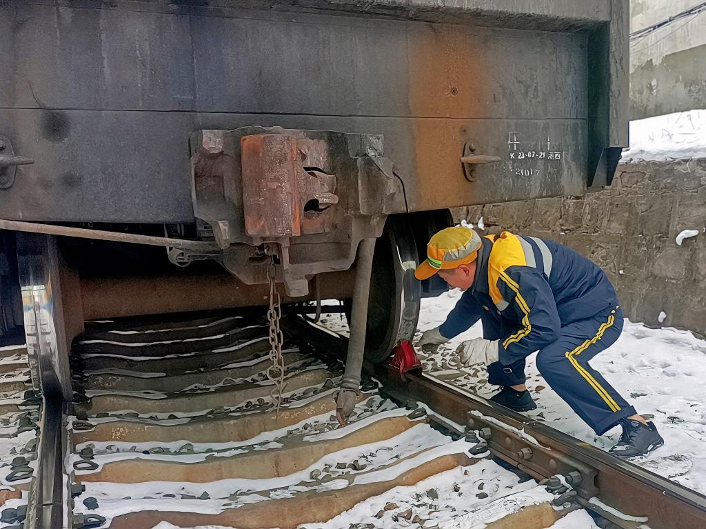 鐵運(yùn)分公司北區(qū)綜合段調(diào)車員王小東,主要擔(dān)負(fù)指揮調(diào)車作業(yè),確保安全高效,嚴(yán)守規(guī)章。圖中他正俯身緊貼冰冷的軌道,專注地為車輛安裝鐵鞋——這小小的鐵鞋,是防止車輛溜逸的“安全鎖”,更是他守護(hù)運(yùn)輸安全的“武器”。在熟練地完成工作后他也為大家送來了2026年的新年寄語(yǔ):“我愿繼續(xù)做站場(chǎng)上的‘守路人’,以釘釘子的勁頭守好每一道安全關(guān),用精準(zhǔn)作業(yè)為鐵路運(yùn)輸添動(dòng)力,祝大家馬年馬到成功,歲歲平安!”(張洋)