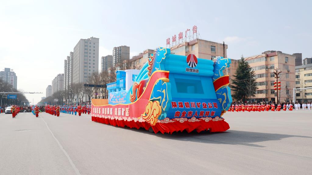 此次社火展演中,公司的工業(yè)藍(lán)主題彩車(chē)成為巡游隊(duì)伍中的一大亮點(diǎn)。彩車(chē)以象征礦業(yè)工業(yè)底蘊(yùn)與現(xiàn)代活力的工業(yè)藍(lán)為主底色,以馬踏祥云的造型為首部,以礦區(qū)標(biāo)志性建筑和“銅煤四個(gè)一”特色文化品牌為內(nèi)容,造型設(shè)計(jì)融合企業(yè)特色與時(shí)代元素,既彰顯了銅川礦業(yè)深耕煤海、實(shí)業(yè)興邦的產(chǎn)業(yè)根基,又融入了“幸福陜煤 和諧銅煤 美麗礦區(qū)”的發(fā)展愿景,既契合丙午馬年的喜慶氛圍,又寓意著銅川礦業(yè)在新的一年里策馬揚(yáng)鞭、奮勇?tīng)?zhēng)先。車(chē)身醒目呈現(xiàn)“陜煤銅川礦業(yè)公司向全市人民拜年”的字樣,傳遞著企業(yè)對(duì)全市人民的新春祝福,以及扎根銅川、服務(wù)地方的深厚情懷。巡游途中,彩車(chē)緩緩駛過(guò)大街小巷,引得沿途群眾紛紛駐足觀賞、拍照留念,成為一道流動(dòng)的靚麗風(fēng)景線。