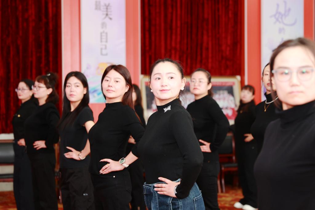 互動實踐環(huán)節(jié)將現(xiàn)場氣氛推向了高潮。在陳老師和助教團隊的悉心指導(dǎo)下,女職工們熱情高漲,積極投入練習(xí),隨老師的口令,在一招一式中糾正不良體態(tài),在一顰一笑間體會禮儀風(fēng)范。老師耐心地為每一位學(xué)員調(diào)整動作,細(xì)心糾正,確保大家都能掌握要領(lǐng)、學(xué)有所獲?,F(xiàn)場歡笑聲不斷,大家在輕松愉悅的氛圍中放松了身心,提升了氣質(zhì),也增強了自信。