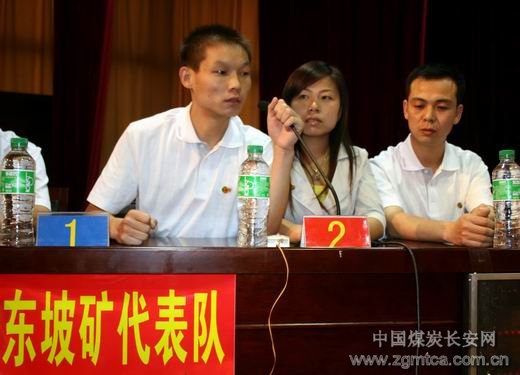 參加決賽的是下石節(jié)礦、東坡礦、陳家山礦、徐家溝礦、直屬機(jī)關(guān)工委、鐵運(yùn)公司、華瑞公司、多經(jīng)公司等9支代表隊(duì),抽簽決定坐次,設(shè)立了仲裁委員會(huì),保證競賽的公平。競賽分為個(gè)人必答題、集體必答題、搶答題、風(fēng)險(xiǎn)題四部分。