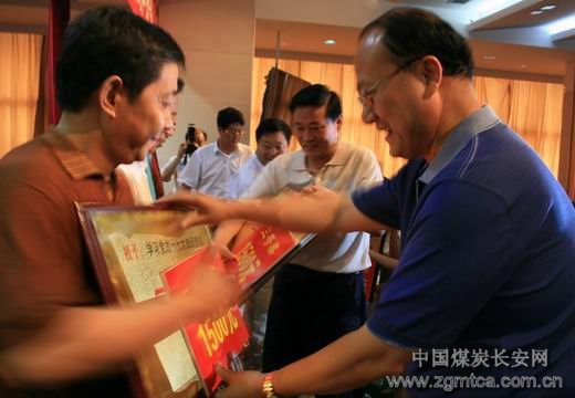 局黨委副書記、紀(jì)委書記張志文,局黨委常委、礦區(qū)工會(huì)主席張仿文等為獲獎(jiǎng)單位頒獎(jiǎng)