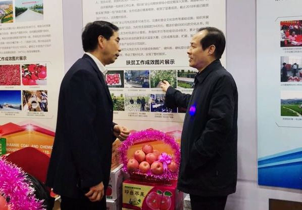 1月28日,陜煤集團舉辦的以“高質量發(fā)展、新時代陜煤”為主題的2019年新春團拜會及扶貧農副產品暨內部生活類消費品展博會在西安召開。公司黨委書記、執(zhí)行董事王蓬,公司總經理劉水利,在會議期間來到集團所屬16家“兩聯(lián)一包” 脫貧攻堅工作成果展區(qū),駐足觀看了公司扶貧成果展板,并對積極推進脫貧攻堅和促進公司向生態(tài)農業(yè)轉型工作進行指導。