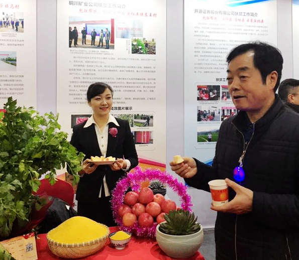 王蓬在公司扶貧工作成果展區(qū)與公司鴨口礦工會副主席、公司駐印臺區(qū)紅土鎮(zhèn)東王村第一書記趙龍喜親切交談,感謝他按照公司安排部署,積極參與扶貧工作付出的努力。詳細詢問公司幫扶紅土鎮(zhèn)東王村脫貧工作進展情況和取得的務實成效,并了解了公司扶助的東王村免燒磚廠,以及該村農產品銷售情況。王蓬對該村免燒磚廠銷售和取得的扶貧效果表示欣慰,并指出在磚廠冬季停產期間,工作不能停滯,要總結好磚廠運行和管理的工作經驗,并可利用休工時間抓好工人的安全培訓、技能提升等工作,努力為開春后的磚廠安全生產打好基礎。要圍繞發(fā)揮磚廠效益,與客戶加強溝通,增進交流,征求意見,努力通過提高產品質量和加強產品營銷,進一步打開銷路,切實以質量提升、效率提升、效益提升,讓東王村村民得到更多實惠。關于推動該村無公害蔬菜發(fā)展,王蓬指出要進一步加強綠色農產品宣傳力度,發(fā)揮綠色、生態(tài)、環(huán)保優(yōu)勢,關注市場行情,穩(wěn)固客戶群,注重市場銜接,加強網絡銷售,持續(xù)擴大市場占有率,切實讓村民早日實現(xiàn)脫貧致富。王蓬同時勉勵趙龍喜要加強與公司有關方面的溝通,加強與東王村干部和村民的交流,更好促進公司開展脫貧攻堅工作取得更大成績,并努力在參與脫貧攻堅工作中展示銅煤黨員干部的風采和業(yè)績、素質和形象。趙龍喜表示將謹記領導囑托,更好擔負責任、推進工作。