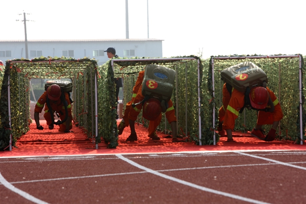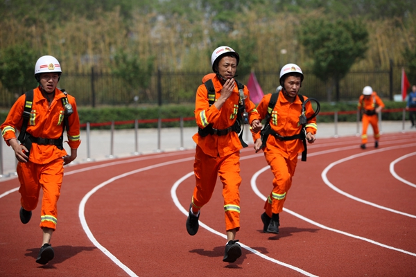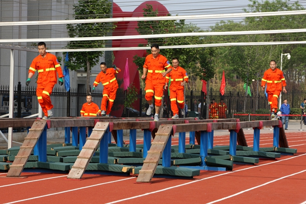 上午8時整,綜合體能賽拉開戰(zhàn)幕。參賽隊員秩序井然、精神抖擻,6人一組,在完成高空爬繩后,迅速背起近二十公斤的呼吸器進行千米奔跑,并要在途中穿越長15米的獨木橋,爬過20米的低巷,到達終點完成綜合體能競技的各項內容。競賽中,各參賽隊的隊員以有力的攀繩動作,越橋的矯健身影,鉆巷的快捷熟練,奔跑的健步如飛,彰顯著救護隊員的奮斗精神和戰(zhàn)斗風貌。