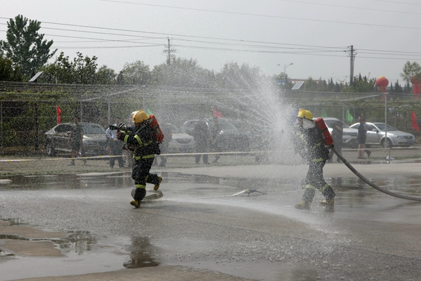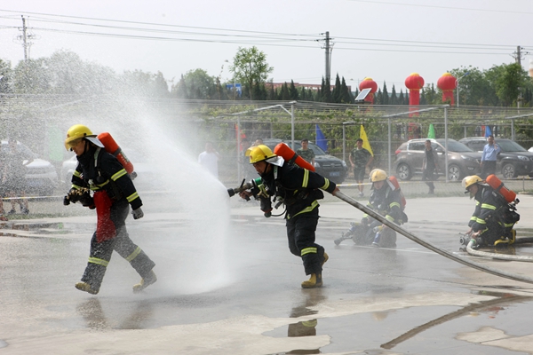 在消防模擬救災比賽中,隨著指令發(fā)出,警笛鳴響,參賽的救護隊員備齊裝備、快速集結,風馳電掣地登上救援車輛迅速趕赴救援現(xiàn)場,在團結奮戰(zhàn)和熟練操作中相繼完成火災救援處置任務。