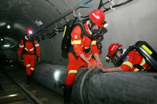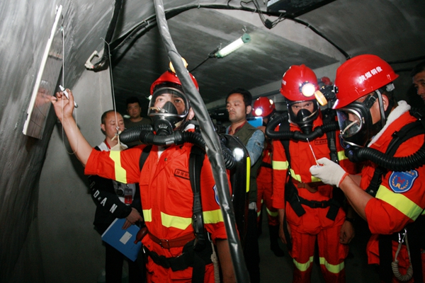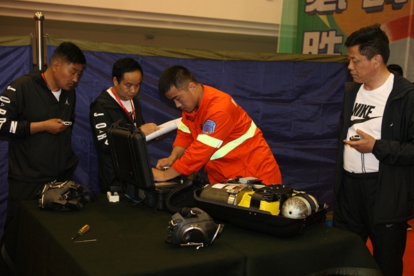 25日,模擬井下救災項目拉開戰(zhàn)幕,競技隊員需在60分鐘內,完成氣體檢測、頂板檢測、風量檢測、井下滅火、恢復通風、災區(qū)探查、搜救失蹤人員、解救遇險人員等任務,同時對災區(qū)情況進行詳細記錄、標注,及時準確地將信息反饋給救災指揮部,并安全地返回到井下基地。