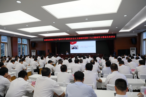 為進(jìn)一步學(xué)習(xí)宣傳貫徹習(xí)近平新時(shí)代中國特色社會(huì)主義思想和黨的十九大精神,扎實(shí)推進(jìn)習(xí)近平新時(shí)代中國特色社會(huì)主義思想走深走實(shí)。7月19日,陜煤集團(tuán)宣講團(tuán)成員,集團(tuán)宣傳部部長、新聞中心主任梅方義到公司開展習(xí)近平新時(shí)代中國特色社會(huì)主義思想和黨的十九大精神常態(tài)化宣講。公司在家領(lǐng)導(dǎo),各副總,公司機(jī)關(guān)各部門負(fù)責(zé)人,公司所屬各單位副處級(jí)以上領(lǐng)導(dǎo)干部共同聆聽了此次講座。