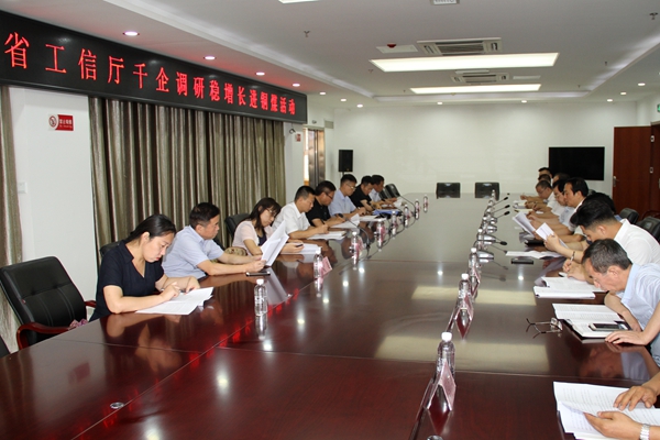 8月9日上午,省工信廳楊巍峰處長帶領調研組,走進公司開展千企調研穩(wěn)增長活動。公司總經(jīng)理劉水利,副總經(jīng)理、總工程師師同民,總會計師萬軍鋒,與公司相關部門負責人參加了調研座談會。