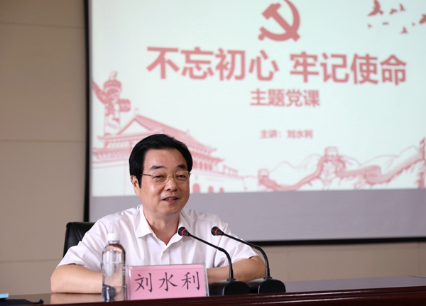 開班儀式結束后,劉水利以《 深入學習習近平新時代中國特色社會主義思想,加快企業(yè)轉型升級、高質量發(fā)展,以實際行動踐行初心使命》為題,圍繞“共產(chǎn)黨人的初心和使命是什么,為什么要不忘初心牢記使命,如何才能不忘初心牢記使命,怎樣結合實際履行不忘初心牢記使命”四個方面,結合公司當前工作實際,發(fā)展思路、需要破解問題,以及在追趕超越、高質量發(fā)展中所肩負的使命擔當,為學員上了一堂精彩的黨課。