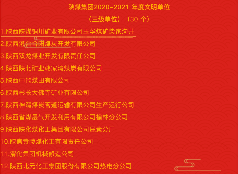 在2020—2021年工作中,公司通過深入貫徹落實(shí)陜煤集團(tuán)改革發(fā)展的各項(xiàng)決策部署,緊扣“調(diào)整、規(guī)范、創(chuàng)新、提升”工作要求,以加快高質(zhì)量發(fā)展為主線,以銅煤奮斗者的頑強(qiáng)奮斗和擔(dān)當(dāng)作為在新征程上開創(chuàng)了企業(yè)各項(xiàng)工作發(fā)展的新局面。工作中,公司在全力抓好生產(chǎn)經(jīng)營,切實(shí)保障企業(yè)經(jīng)濟(jì)運(yùn)行的同時(shí),進(jìn)一步將創(chuàng)建文明單位作為提高職工隊(duì)伍素質(zhì),提升企業(yè)管理水平、提升礦區(qū)文明程度,推動(dòng)企業(yè)加快高質(zhì)量發(fā)展的重要工作來抓,通過深入開展文明創(chuàng)建系列工作,為礦區(qū)發(fā)展涵育了健康文明之風(fēng),注入了強(qiáng)勁精神動(dòng)力,提供了有力的文化支撐,公司躋身“2021年度陜西省國資委文明單位”行列。