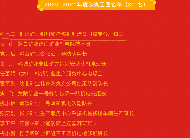 4月28日,陜煤集團(tuán)召開2020-2021年度文明單位和勞動(dòng)模范、陜煤工匠表彰大會(huì),號(hào)召集團(tuán)上下以文明單位、勞動(dòng)模范、陜煤工匠為榜樣,弘揚(yáng)勞動(dòng)精神、勞模精神、工匠精神,學(xué)習(xí)先進(jìn)、鼓舞干勁、努力工作、拼搏進(jìn)取,為集團(tuán)公司改革發(fā)展作出積極貢獻(xiàn)。會(huì)上,為公司頒發(fā)了“2021年度陜西省國資委文明單位”獎(jiǎng)牌;公司玉華礦柴家溝井榮獲陜煤集團(tuán)2020—2021年度文明單位;柴家溝井礦長李滿平、玉華井綜采隊(duì)班長郭小斌、欣榮配售電公司電力施工部部長蘇寧樂榮獲2020—2021年度陜煤集團(tuán)勞動(dòng)模范,欣盛煤機(jī)制造公司煤專分廠鉗工程七三榮獲2020—2021年度陜煤工匠,一并受到集團(tuán)公司的表彰獎(jiǎng)勵(lì)。