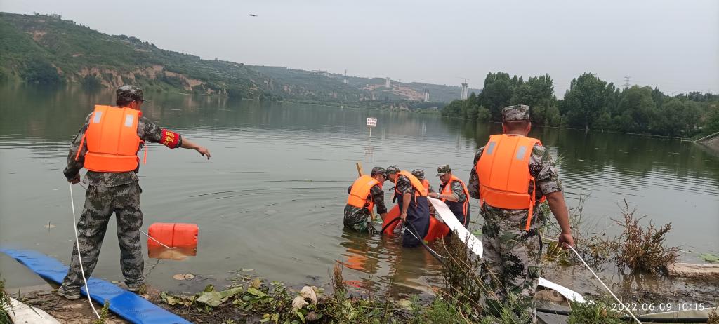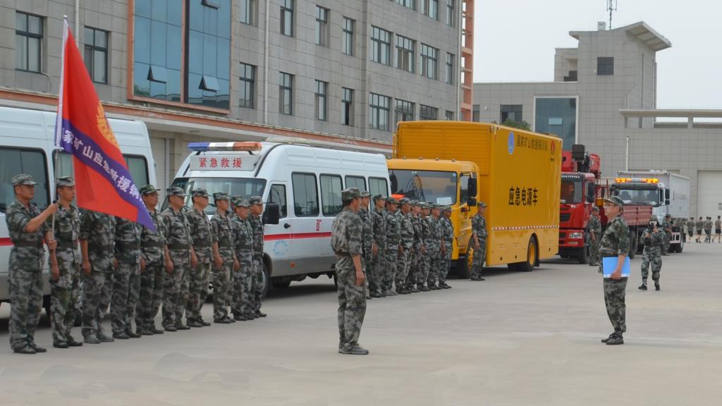 6月9日上午9時(shí),國(guó)家礦山應(yīng)急救援隊(duì)院內(nèi)緊張嚴(yán)肅?!敖由霞?jí)命令和公司指令,由于頻降暴雨,造成某城區(qū)內(nèi)澇,人民生命財(cái)產(chǎn)受到嚴(yán)重威脅,要求我隊(duì)前往救援。根據(jù)上級(jí)指令,我宣布立即啟動(dòng)水災(zāi)救援預(yù)案!”隨著救援總指揮一聲令下,所有人員迅速登車,各類車輛緊急出動(dòng),國(guó)家礦山應(yīng)急救援銅川隊(duì)2022年水災(zāi)救援專項(xiàng)演練正式拉開戰(zhàn)幕。公司總經(jīng)理助理劉彥明及相關(guān)部室人員觀摩了此次演練。