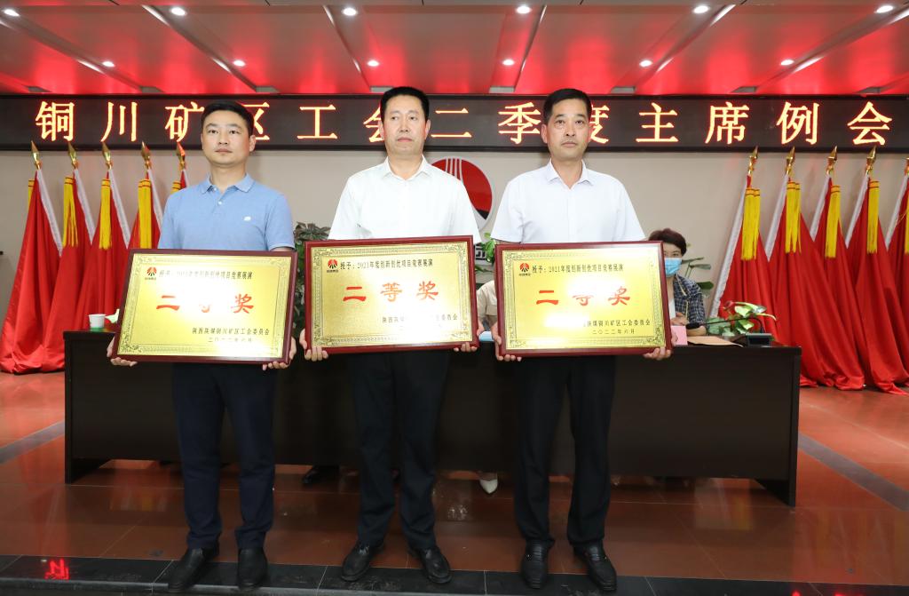 在隨后召開的銅川礦區(qū)工會(huì)二季度主席例會(huì)上,宣讀了礦區(qū)工會(huì)對2021年創(chuàng)新創(chuàng)優(yōu)項(xiàng)目競賽的表彰決定,并為獲獎(jiǎng)項(xiàng)目的單位代表頒發(fā)了獎(jiǎng)牌。