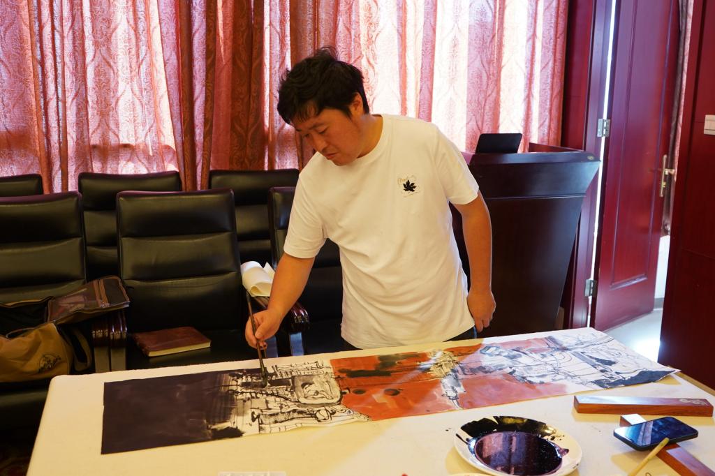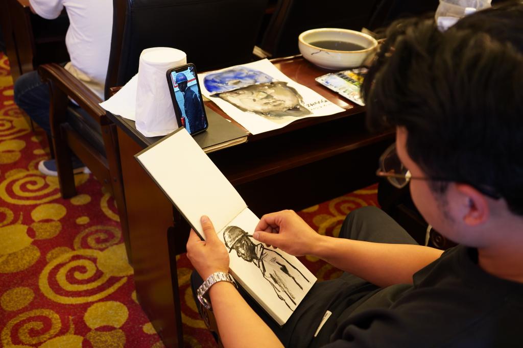 實地采風結(jié)束后,藝術家們結(jié)合采風的見聞感受和迸發(fā)的創(chuàng)作靈感,現(xiàn)場揮毫潑墨,以書法、國畫、素描、木版刻畫、水墨畫等多種藝術形式,通過創(chuàng)作精品佳作,對煤礦工人辛勤勞動的工作場景、昂揚奮斗的精神面貌和銅川礦區(qū)改革發(fā)展取得的成果進行了深情描繪、藝術呈現(xiàn)和謳歌禮贊。