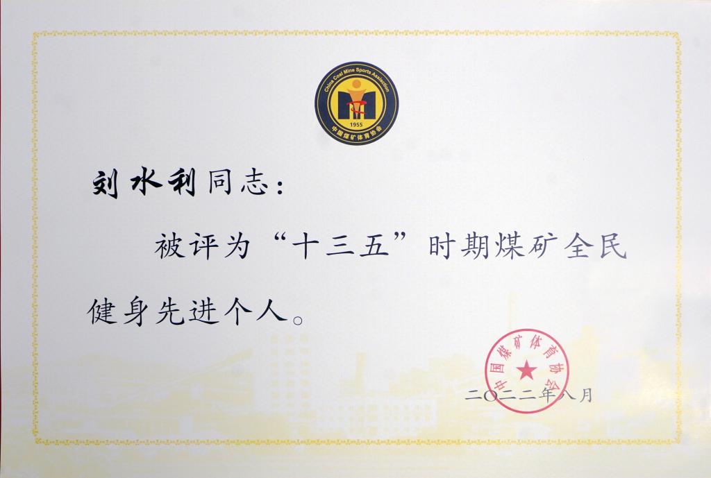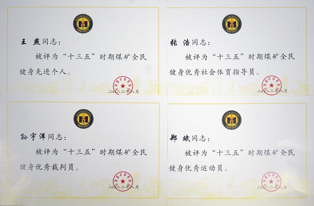 會(huì)上,銅川礦業(yè)公司和公司玉華礦柴家溝井被中國(guó)煤礦體育協(xié)會(huì)評(píng)為“十三五”時(shí)期全民健身先進(jìn)單位,公司黨委書記、董事長(zhǎng)劉水利被評(píng)為全民健身先進(jìn)個(gè)人,公司職工王燕、張浩、孫宇洋、鄭斌分別被評(píng)為全民健身先進(jìn)個(gè)人、全民健身優(yōu)秀社會(huì)指導(dǎo)員、優(yōu)秀裁判員、優(yōu)秀運(yùn)動(dòng)員,一并受到大會(huì)表彰。