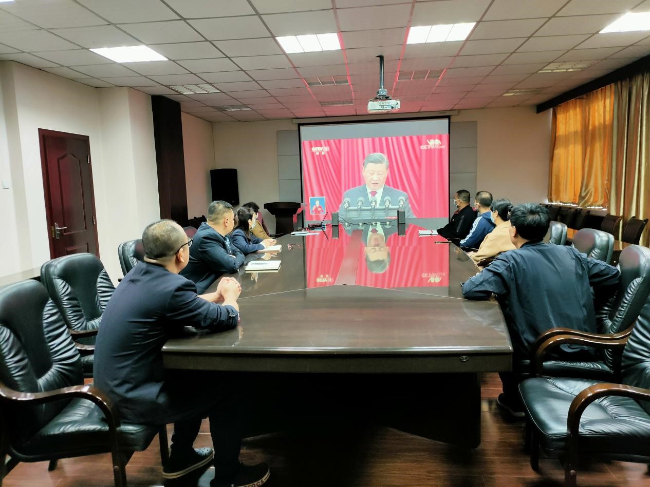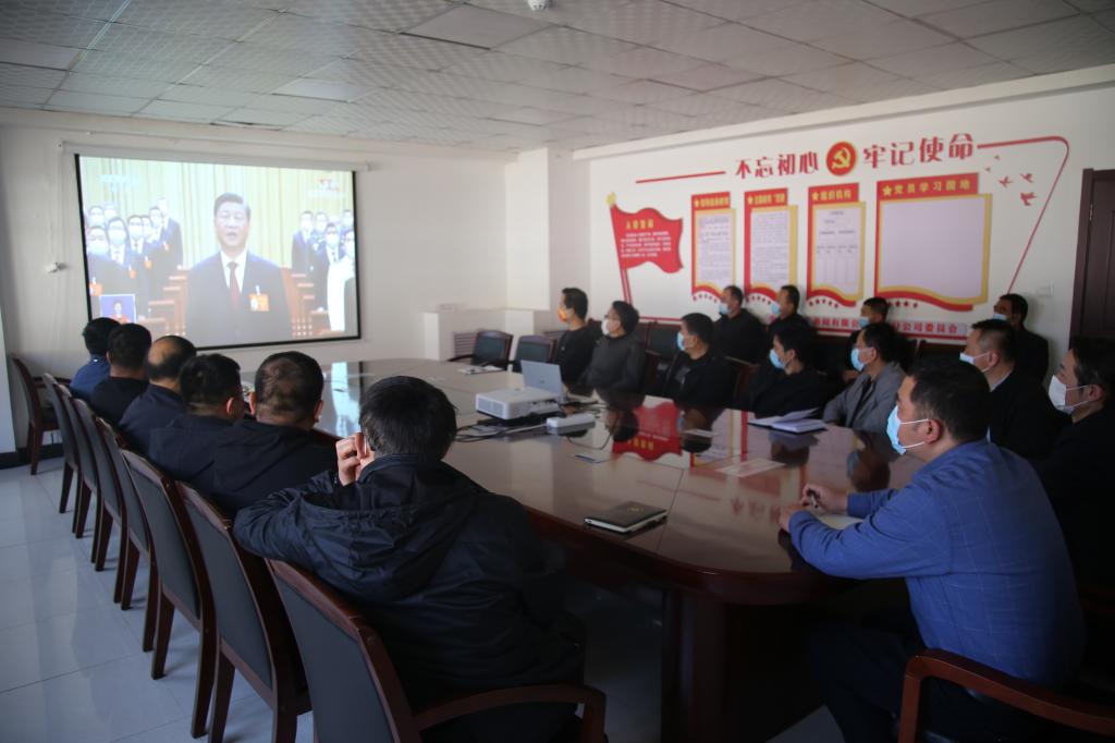 公司黨委副書記、總經(jīng)理路根奎等領(lǐng)導(dǎo)與機關(guān)黨員干部收看大會開幕盛況