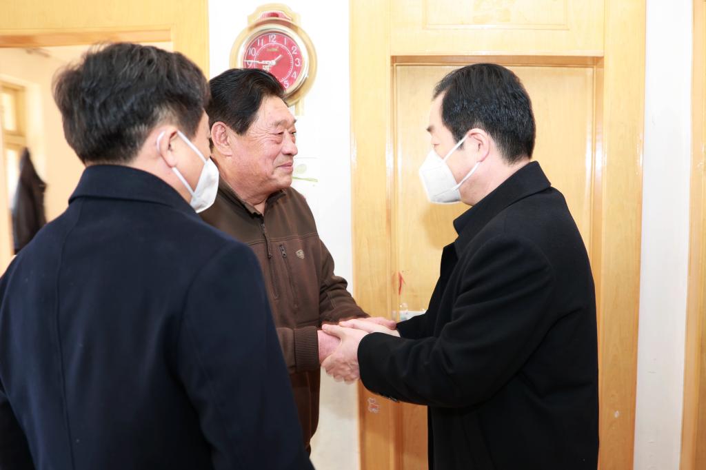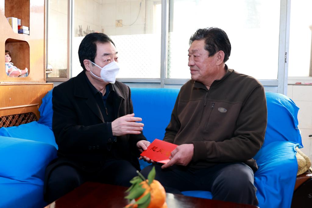 剛一走進(jìn)李富軍家,劉水利就熱情地說“李老,您好啊,新年快要到了,今天我受陜煤集團(tuán)黨委副書記、紀(jì)委書記王海帆同志的委托專程來看望您。”在向李富軍轉(zhuǎn)達(dá)了集團(tuán)領(lǐng)導(dǎo)的親切問候和美好祝福之后,劉水利簡要向李富軍介紹了近年來陜煤集團(tuán)和銅川礦業(yè)的發(fā)展情況,并關(guān)切地詢問了他的身體、生活及家庭情況。他動(dòng)情地說“您老人家是在銅川礦務(wù)局李家塔煤礦工作過的老一輩銅煤礦山建設(shè)者,在礦區(qū)采煤一線長期奮戰(zhàn),是礦務(wù)局勞模和全國五一勞動(dòng)獎(jiǎng)?wù)芦@得者,你們老一輩的貢獻(xiàn)組織不會(huì)忘記,很值得新一代的銅煤人學(xué)習(xí),我們一定會(huì)接過你們老一輩礦山建設(shè)者的接力棒,發(fā)揚(yáng)奮斗精神,傳承勞模精神,努力在奮斗創(chuàng)業(yè)、實(shí)干作為中將礦山建設(shè)的更美好,也希望你們這些礦區(qū)功臣對我們的工作多提寶貴的意見和建議。他同時(shí)對老一輩銅煤建設(shè)者的奉獻(xiàn)付出表示衷心的感謝和崇高的敬意,并祝李富軍和家人新年快樂、吉祥安康?!蓖瑫r(shí)囑咐隨行人員要積極落實(shí)相關(guān)政策,切實(shí)關(guān)心關(guān)愛勞模,進(jìn)一步在礦區(qū)樹立勞動(dòng)光榮的良好風(fēng)尚,通過弘揚(yáng)勞模精神,加快企業(yè)高質(zhì)量發(fā)展。