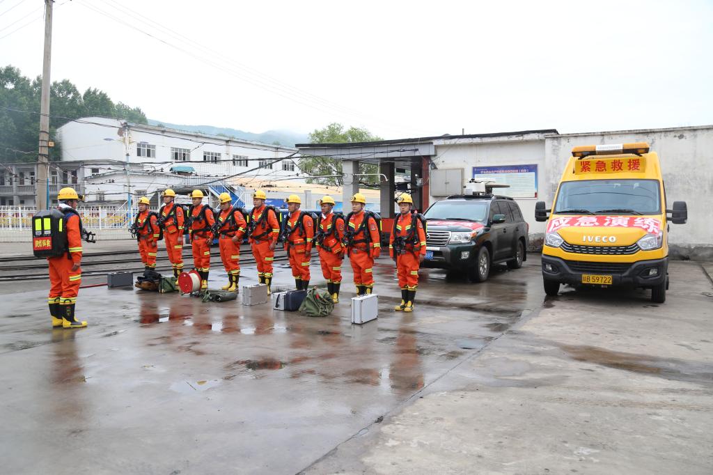 立即下達(dá)命令“陳家山礦發(fā)生水災(zāi)事故,現(xiàn)命令你們火速趕赴現(xiàn)場(chǎng)參加救援搶險(xiǎn)”。接到命令后,警笛鳴響,公司礦山救護(hù)大隊(duì)指戰(zhàn)員聞警出動(dòng)。