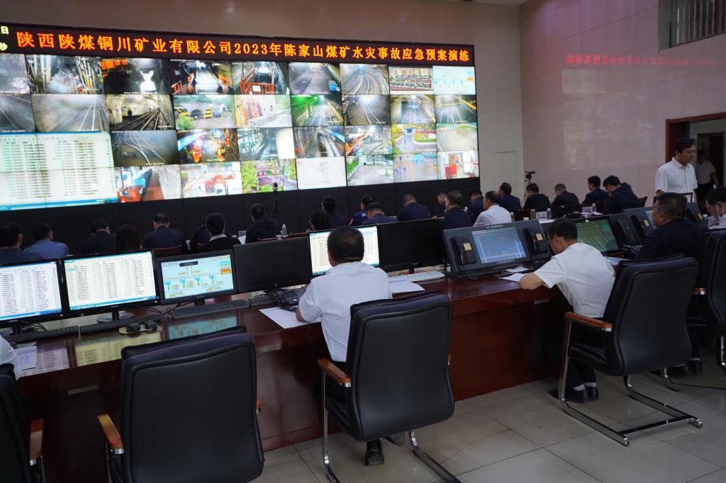 在31日舉辦的水災(zāi)事故應(yīng)急演練活動(dòng)現(xiàn)場(chǎng),國(guó)家礦山安全監(jiān)察局陜西局救援指揮中心主任鐘楠,陜西局監(jiān)察執(zhí)法三處二級(jí)調(diào)研員孫即亮,銅川市能源局四級(jí)調(diào)研員、總工程師李軍發(fā)等領(lǐng)導(dǎo)在陳家山礦調(diào)度指揮中心對(duì)演練進(jìn)行了現(xiàn)場(chǎng)觀摩指導(dǎo)。陜西局有關(guān)領(lǐng)導(dǎo)在西安辦公樓會(huì)議室通過生產(chǎn)指揮監(jiān)控平臺(tái)觀看了演練。公司領(lǐng)導(dǎo)和公司機(jī)關(guān)有關(guān)部門負(fù)責(zé)人參加了應(yīng)急演練,彬長(zhǎng)礦業(yè)文家坡礦、公司玉華礦、下石節(jié)礦、柴家溝井、冶坪分公司有關(guān)人員現(xiàn)場(chǎng)觀摩了演練。
